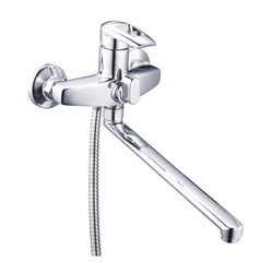 см-ль для ванной, техналогия производства литьё в песчаную форму, материал корпуса латунь (Lt), с пов. плоским изливом 360°, картридж ø35, покрытие хром, встр. в корпус картриджное переключение на душ. 10шт/уп.