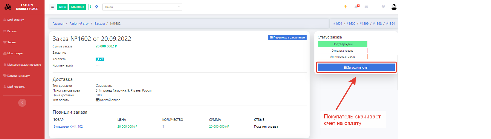 По умолчанию в решении Falcon Marketplace не предусмотрена возможность оплаты товара через площадку.