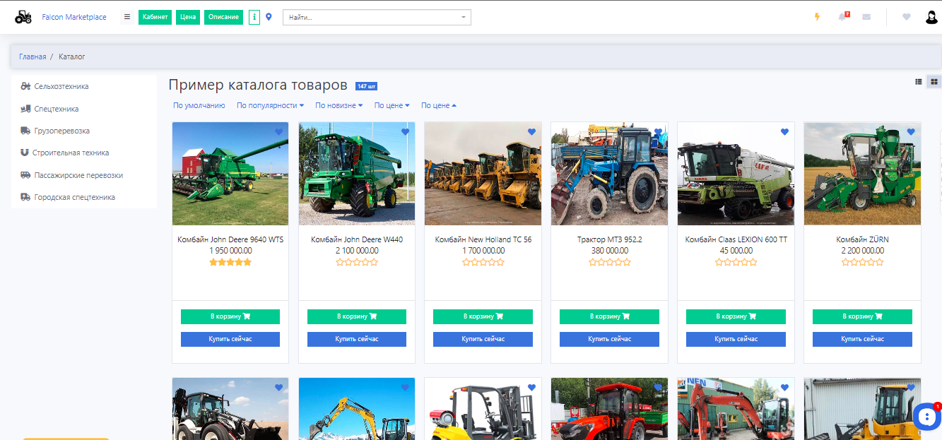 В решении Falcon Marketplace реализован сложный каталог. Фильтры и атрибуты привязаны к родительской категории.